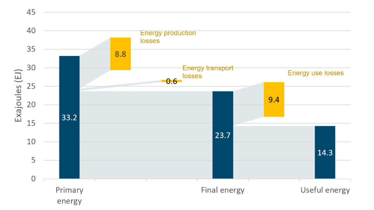 Gráfico. El 57% del uso de energía de Francia, Alemania, Italia y Polonia, por valor de 328 mil millones de euros, se desperdició en 2019