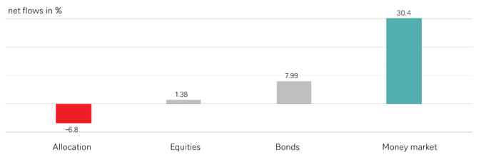 Como resultado del endurecimiento monetario del Banco Central Europeo (BCE) entre 2022 y 2024, el aumento de los tipos de interés generó una fuerte demanda de soluciones relacionadas con el mercado monetario, que ahora ofrecen rendimientos superiores al 4% anual. Además de los atractivos tipos de interés, los inversores privados, en particular, se sintieron atraídos por la volatilidad históricamente baja y la alta liquidez de esta clase de activos.