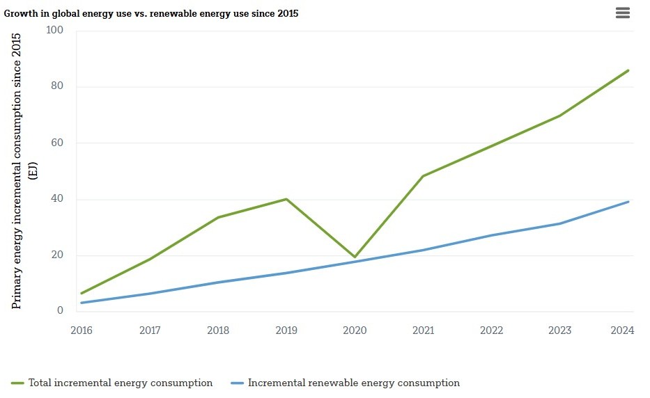 Fonti: Energy Institute (giugno 2025). Statistical Review of World Energy 2025; le energie rinnovabili includono solare, eolico, biocarburanti, idroelettrico e altre energie rinnovabili. DWS Investment GmbH al 9/10/25