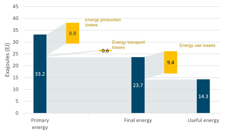 Il grafico riassume i flussi energetici e il valore economico approssimativo delle perdite di energia per Francia, Germania, Polonia e Italia nel 2019. I valori dell'energia primaria e finale, così come le perdite di produzione e trasporto dell'energia, si basano sui World Energy Balances dell’IEA. I valori dell'energia utile e delle perdite di utilizzo dell'energia si basano su De Stercke (Dynamics of Energy Systems 2014). Il valore economico delle perdite di produzione e trasporto dell’energia è stimato utilizzando i prezzi all’ingrosso dell’energia (ad es. prezzi spot) in Europa, ottenuti dall’Energy Institute e Ember. Le informazioni sul valore economico dell'energia per biomassa, nucleare e geotermia sono omesse a causa della mancanza di dati sui prezzi dell'energia primaria. Il valore economico è misurato in EUR 2019 (correnti), senza adeguamento per l’inflazione.