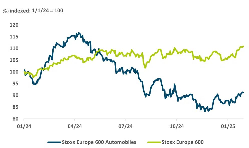 Il nostro Grafica della settimana mostra che l’indice Stoxx Europe 600 [2] Auto ha registrato una performance significativamente inferiore rispetto al più ampio Stoxx Europe 600. Mentre l’indice principale è aumentato di circa il 10% dall’inizio del 2024, il sottoindice specializzato nel settore automobilistico è sceso di circa la stessa percentuale. Tuttavia, negli ultimi mesi si è diffusa la sensazione che il barometro del settore possa aver trovato un punto di stabilizzazione. A nostro avviso, ciò potrebbe essere dovuto anche all’aspettativa che l’UE possa fornire un certo sostegno ai produttori di automobili per rafforzarne la competitività.