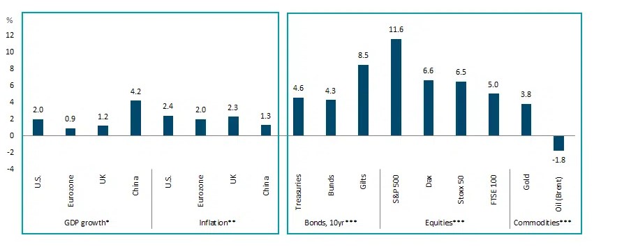 Avvicinandoci al 2025, il panorama degli investimenti si presenta interessante, bilanciato però da una certa imprevedibilità . La combinazione di forze di riconciliazione tra una crescita normalizzata, un rallentamento dell'inflazione e i previsti tagli ai tassi da parte delle banche centrali creano, a nostro avviso, un contesto favorevole per diverse classi di investimento. Tuttavia, l'elezione di Donald Trump per un secondo mandato non consecutivo come Presidente degli Stati Uniti introduce un elemento di incertezza che potrebbe influenzare le dinamiche di mercato.