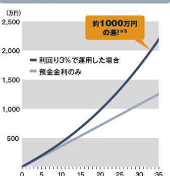 ※2 全期間の運用利回りが年0.01%だった場合と、年3%だった場合の比較