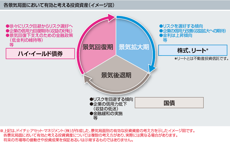 ハイ・イールド債券は景気回復期に良好なパフォーマンスを示す傾向があると考えられます。