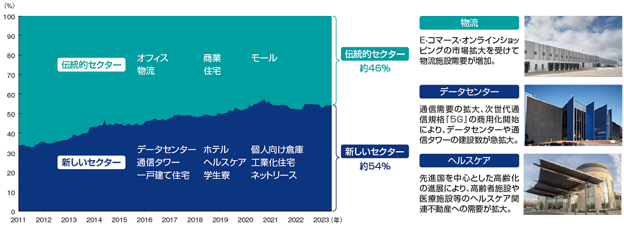 データセンターや通信タワー、ヘルスケアなどの新しいセクターの存在感が増しており、時代の変化に適応した力強い成長が見込まれます。